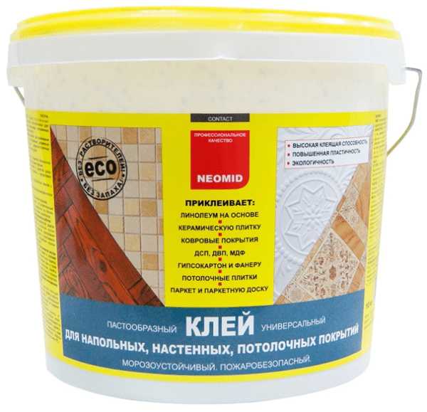 Специальный клеевой состав наиболее популярен при поиске варианта выбора, как приклеить линолеум к полу. Основу клея составляет различное сочетание воды, полиуретана, растворителя и некоторых других компонентов.