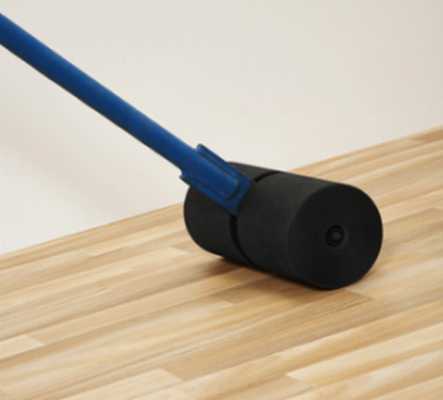 Полотнища укладываются на клей и тщательно прижимаются. С помощью резинового валика от середины полотнища к краям выдавливается лишний воздух.