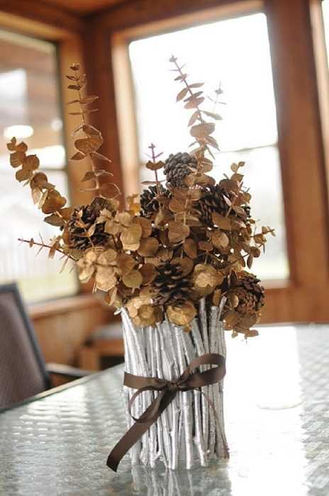 Симпатичный и очень интересный вариант создать вазу из веточек дерева, которые преобразят интерьер любой комнаты.