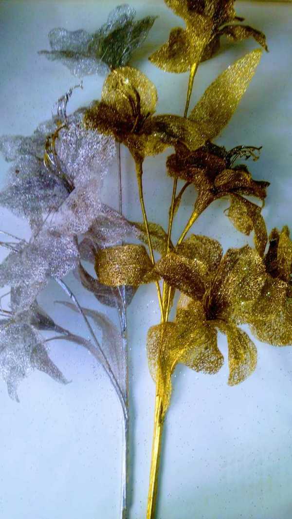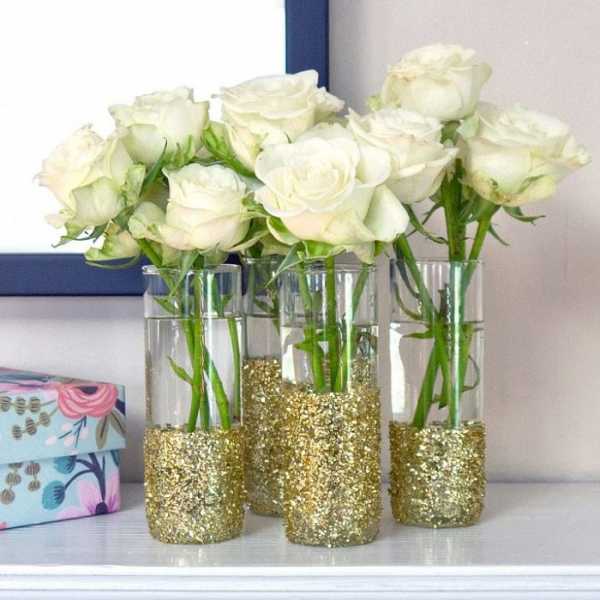 Оригинальное решение для оформления ваз при помощи золотых блесток.