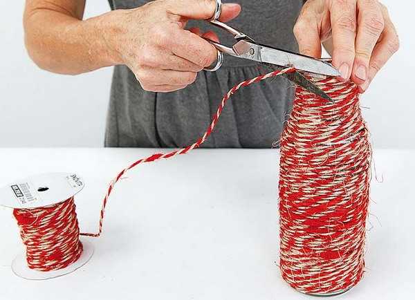 При помощи нити или шнура возможно создать незабываемые вазы, что станут просто отменным решением для декора.
