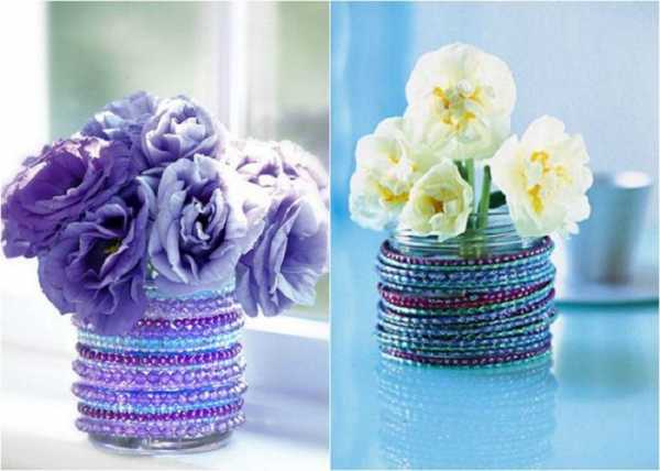 Преобразить и украсить вазу возможно при помощи бусин, что создадут по настоящему красивую вазу за минимум времени и средств.