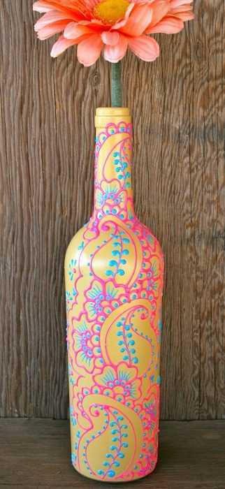 Декорирование винных бутылок при помощи ручной росписи, что может быть еще более привлекательней чем это.