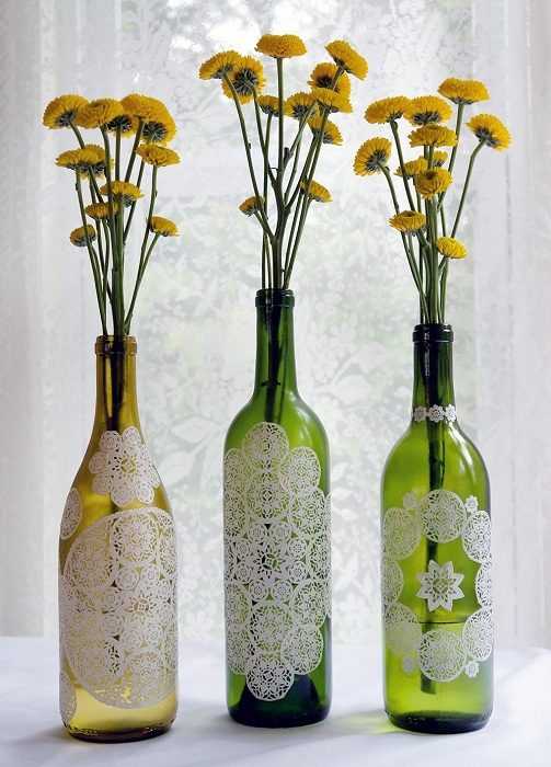 Симпатичное решение создать из обычных бутылок красивые вазы, что станут находкой.