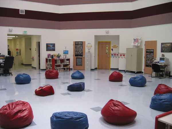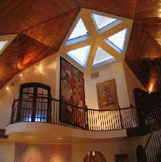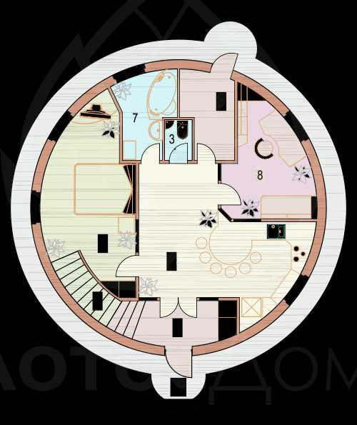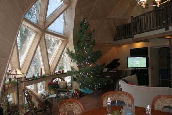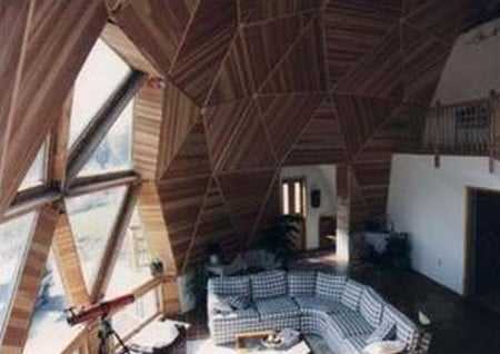 Фото – Холл с цветными креслами мешками в купольном доме Постройка дома в виде геодезического купола