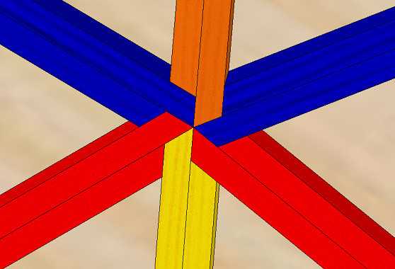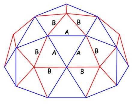 Геодезические купола — архитектурные сооружения с несущей сетчатой оболочкой впервые появились в конце 40-х годов прошлого века. Патент на это изобретение получил американец Ричард Фуллер. Необычные строения должны были решить проблему быстрого возведения недорогого комфортабельного жилья. Для массовой застройки идея не прижилась, но активно используется для строительства футуристических кафе, бассейнов, стадионов. Не менее популярны сферы и среди ландшафтных дизайнеров. Такие строения достаточно просторны и могут быть использованы для самых разных целей. Их необычный вид сразу притягивает внимание, они становятся центром пейзажной композиции. Геодезический купол обладает большой несущей способностью, к тому же его можно построить из простых материалов в самые короткие сроки без привлечения бригад специалистов и техники. Так, купол высотой в 50 метров можно построить силами трех человек без привлечения строительного крана. Благодаря своей форме геокупол гармонизирует пространство, заряжает его позитивной энергетикой. В круглом помещении просторно и невероятно уютно. Достоинство геодезической конструкции в том, что для нее не нужен основательный фундамент. Это значительно облегчает работу, сокращает ее сроки и стоимость расходных материалов. Еще одно достоинство – минимальное количество строительного мусора и шума. Каркасно-щитовая технология, которая лежит в основе строительства геокупола, очень экономична. Она прекрасно подходит для возведения строений самого разного назначения. Купольный павильон для бассейна Вы можете поставить геодезическую баню, сауну, оборудовать под куполом бассейн, построить дом, летнюю кухню, беседку, гараж, легкий и просторный шалаш для детских игр. Вариантов много. Но в нашей стране сферическую конструкцию чаще всего используют в качестве теплицы или оранжереи. Инженерный расчет, необходимый для строительства капитального жилого дома, конечно, следует доверить профессионалам. Однако для строительства на дачном участке будет достаточно простых вычислений с использованием готовых таблиц, которые легко найти в Интернете. В них указано количество ребер одинаковой длины, коэффициент длин ребер с учетом радиуса купола, а также количество и тип коннекторов – прочных креплений для соединения деталей. В таблицах отражены сведения о конструкциях куполов с частотой ребер от 1 до 6. Садоводу остается определиться лишь с тем, какой купол он будет ставить, какова нужна площадь и высота строения. Затем посмотреть данные таблицы, используя коэффициенты, рассчитать длину ребер с учетом радиуса купола и приготовить необходимое количество строительного материала. Схема купола, используемого чаще всего, с частотой ребер 2V Оптимальный вариант — оранжерея с частотой ребра 2V, площадью 3 м и высотой полтора метра. Теперь делаем простейшие вычисления, используя специальную таблицу. Выясняем, что нам понадобится 35 ребер длиной 0,93 м и 30 – по 0,82 м. А также нужно приготовить 6 – пятиконечных и по 10 четырехконечных и шестиконечных коннекторов. Строительный уровень поможет сделать площадку под беседку идеально ровной Собираем основание для будущей оранжереи Строим купол, основа конструкции – равнобедренные треугольники Чтобы накрыть оранжерею поликарбонатом, его нужно нарезать в виде правильны