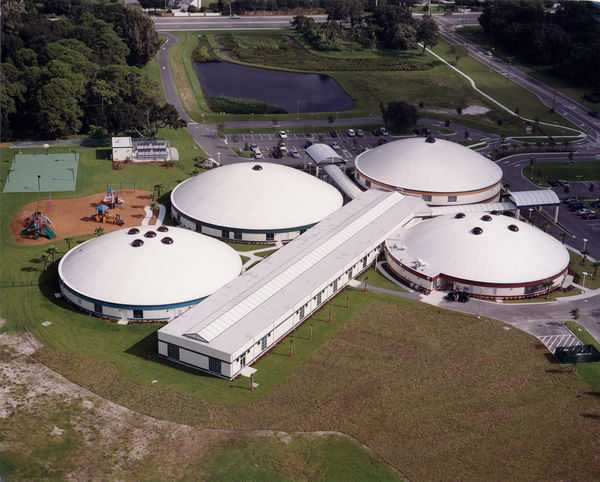 Фото – Купольный дом на фоне синего неба. Школа, построенная в лучших традициях купольных домов