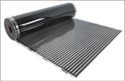 Самой распространенной пленкой в данном сегменте является карбоновая пленка. Поверхность такой пленки покрыта карбоновой пастой различных размеров, сгруппированных блоками по 20 единиц. Эта особенность значительно облегчает монтаж такого пола, давая возможность вырезать необходимый кусок полотна для любого помещения. Нагреватель в виде карбоновых полосок подключается параллельным способом, что позволяет нагреваться пленки даже в результате разрыва одного или нескольких блоков.