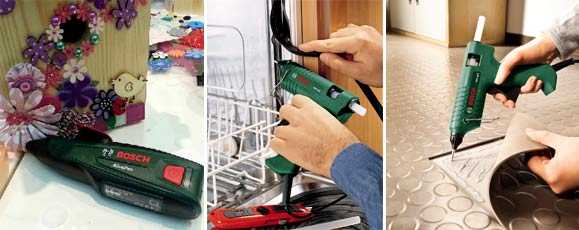 Бумага, резина, стекло, пластик, ткань, керамика, пенопласт, дерево, металл – это всё под силу склеить пистолету.