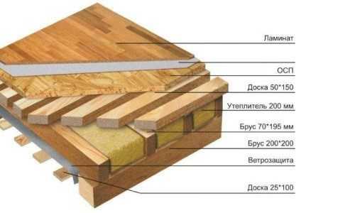 Пол, изготовленный из пиломатериалов, представляет собой нечто вроде бутерброда из нескольких слоев. Наиболее часто встречаются следующие варианты: