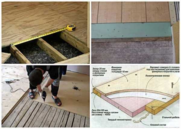 Можно самостоятельно заняться обустройством системы лаг поверх закрепленного настила из досок, на которые будут укладываться фанерные листы.