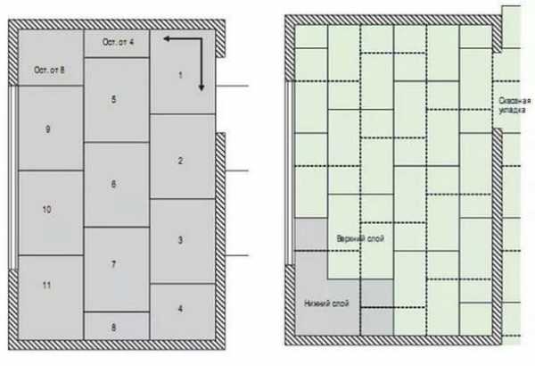 Чтобы увеличить жесткость конструкции, укладка листов производится в 2 слоя таким образом, чтобы не было совпадения швов в верхнем и нижнем рядах.