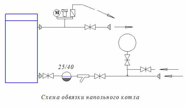 Часто повторяемой ошибкой при создании системы отопления является установка излишне мощных насосов, невзирая на то, что они стоят в разы дороже и больше потребляют электроэнергии. Там где оптимальным является насос 25 — 40м (в большинстве небольших домов), устанавливают насосы 25 — 60, и даже 25 – 80 и мощнее.Подключение напольного неавтоматизированного котла