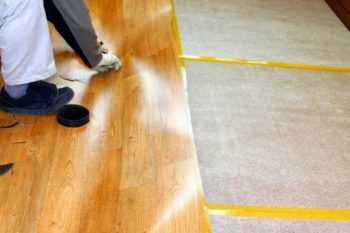 Она зачистит все изъяны. Ровный деревянный пол обрабатывают антисептиком и после полного высыхания приступают к укладке ДВП.