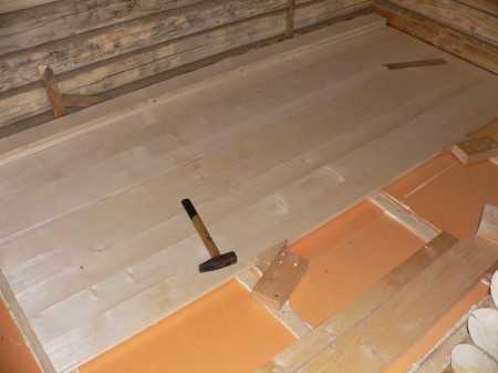 Завершает утепление полов своими руками монтаж толстой фанеры или шпунтованной доски. Последний вариант лучше всего подходит для отделки полов в бане и не требует настила чистового покрытия.