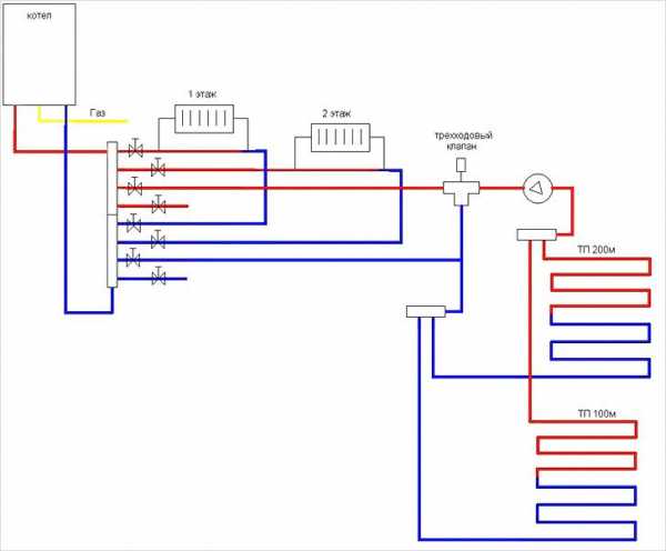 Схема радиаторного и напольного отопления
