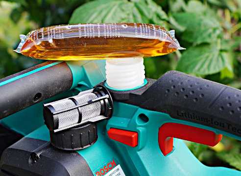 Не считая конкретно смазки, моторное масло в маленьких количествах может употребляться для вымывания из системы остатков «биологического» масла. Невыработанные остатки таких масел образуют желеобразные уплотнения, которые засоряют смазывающую систему электрической пилы и приводят к нарушениям в работе.