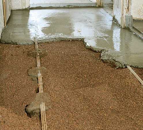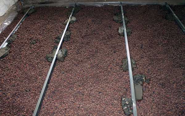 Установка наливного пола с применением керамзитового заполнителя