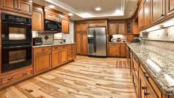 При выборе очень важен класс эксплуатации. Он назначается в приделах от 21 до 33. Если выбрать класс в диапазоне 21-23, пол не прослужит долго. Максимальный срок его службы составит 5 лет. Если не планируется переделка ремонта пола на кухне через несколько лет, необходимо выбрать более высокий показатель.Структура