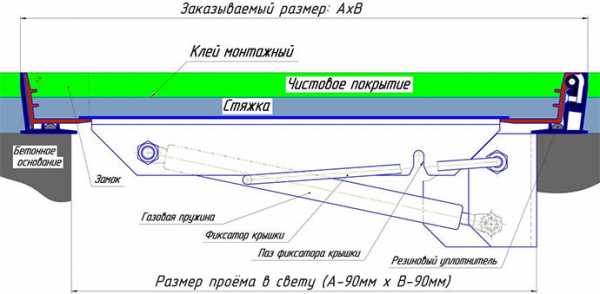 Напольные люки с газовыми амортизаторами в подвал или погреб