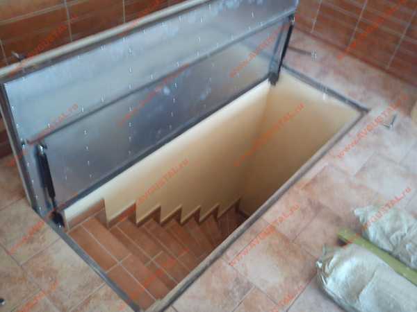 Многие дома и квартиры, расположенные на первых этажах, оборудованы подпольем, где хранятся консервация и хозяйственные вещи. Напольный люк должен выполнять две основные функции: быть надежным входом и вписываться в интерьер, не создавая неудобств. Оглавление: Вход в погреб различают по: Ранее входы имели простую конструкцию типа сдвижной или подъемной крышки на металлическом или деревянном каркасе. Использование их было несколько трудоемким, так как требовало определенных усилий и осторожности в обращении. На смену им пришли напольные люки с газовым амортизатором. Этот вид отличается практичностью, удобством использования, эстетической привлекательностью. Они более универсальны, можно декорировать под различные виды напольного покрытия, они почти не видны на его общем фоне. Амортизаторы позволяют открывать крышку без усилий, так как оборудованы пневматической системой немецкого производства. Назначение и габариты тоже разнятся в зависимости от специфики использования подвала: Размер лючка для хозяйственных нужд должен соответствовать требованиям, чтобы человек мог бы легко спуститься в погреб по прикрепленной к входному отверстию лесенке. Поэтому достаточно будет квадратного или прямоугольного проема в пределах 70 -120 см и люка с амортизаторами с одним или двумя газлифтами. Габариты ниши под оборудование разнятся в зависимости от его типа. Это могут быть специальные системы очистки, технические электроблоки с генератором и прочее. Зачастую напольный люк подобного типа изготавливают с учетом доступа к нему для ремонта аппаратуры и возможного демонтажа, замены. В данной ситуации больше подойдут распашные двустворчатые варианты. Газовых пружин будет установлено от 4 до 6 штук, их количество рассчитывается с учетом нагрузок. Люк в винный погреб для хранения коллекционных образцов чаще имеет продолговатую форму и большие размеры, чем в стандартное хозяйственное подполье. У производителей можно заказать дизайнерские модели с отделкой из дерева, электроприводом. Нужно знать основные габаритные параметры и особенности механического устройства. В эти параметры входят: 1. Размеры: 2. Конструкция: Для бесшумного закрытия и герметизации по периметру каркаса размещается уплотнитель, вставляется в пазы или наклеивается. Дверь даже небольшого металлического лючка достаточно тяжелая, пневматические амортизаторы значительно облегчают процесс пользования. На крышке находится сварной поддон с дополнительными ребрами жесткости. В него монтируется основа для напольного покрытия или утеплитель. На поверхности находятся отверстия для съемных ручек. Толщина металла рассчитывается в зависимости от предполагаемой нагрузки. Окрашивают изделия порошковой краской с добавлением полимеров. Более дорогие модели могут быть изготовлены из нержавеющей стали, алюминия, латуни. В последнее время для небольших лючков используют композитные материалы. Наиболее востребованы скрытые люки под плитку с газовыми амортизаторами, так как в основном подполье устраивают в помещениях с данным типом облицовки. Нюансы монтажа Устанавливают раму до момента заливки чистовой бетонной стяжки, она должна быть в уровень с полом. Предварительно необходимо определится с моделью ревизионной конструкции. Последовательность работ: Приобретая вх