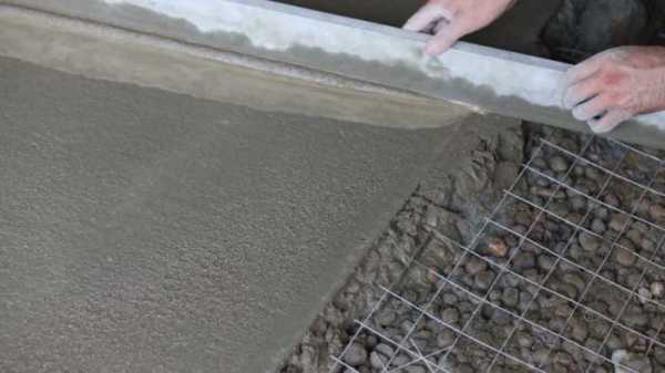 Финишный слой заливается после выравнивания основания. Для этой цели используется правило. Если образуются ямки и лужи, в них следует залить раствор.