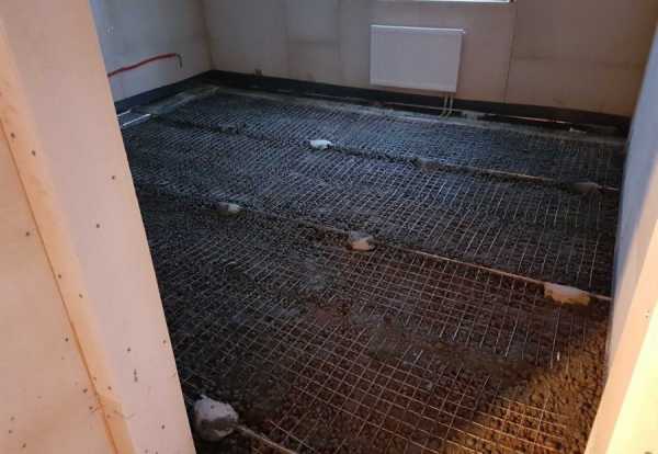 После подготовки и очистки основания от строительного мусора и пыли, можно укладывать стяжку.