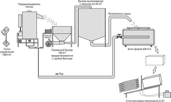 В процессе производства мелкие шарики этого материала наполняются пентаном, который дает вспенивающий эффект после подогрева. Пентан при повышении температуры переходит в летучее состояние и расширяется. Вместе с ним расширяются и шарики, увеличивая свой объем как минимум в 50 раз до диаметра 2-8 мм, и склеиваясь друг с другом. Так получается легкий, упругий пенополистирол, размеры листа которого могут быть весьма разнообразными.