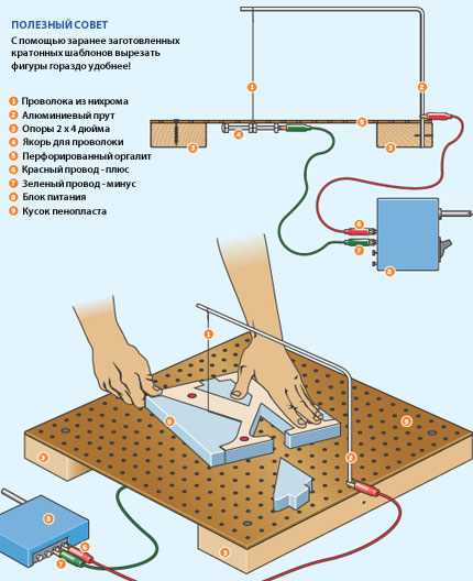 В зависимости от плотности пенопласта для его нарезки на требуемые размеры могут понадобиться следующие инструменты: