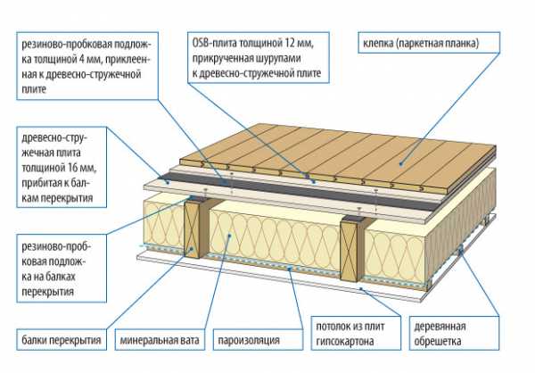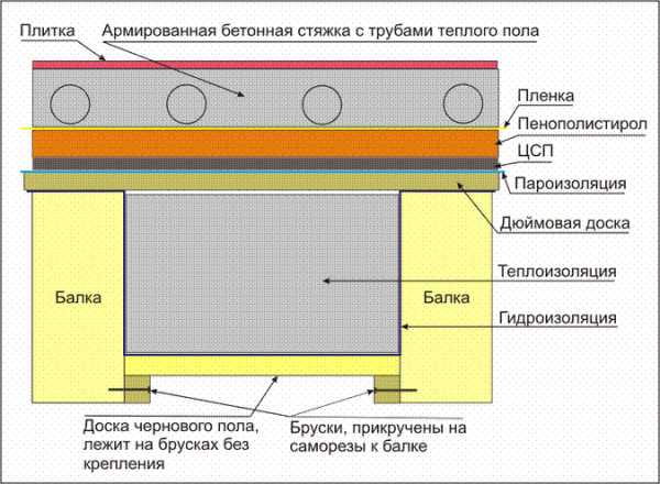 Схема теплоизоляции и пароизоляции деревянного пола.