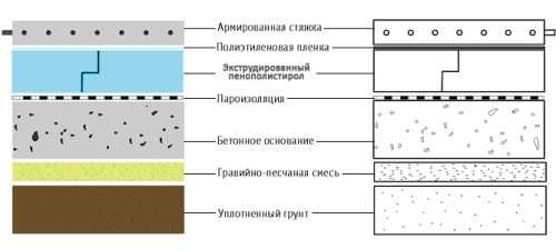 Пол по грунту делается только на устойчивых грунтах при наличии стабильного фундамента. Такой пол обязательно требует теплоизоляции. Она послужит преградой от холода из земли и предотвратит утечки тепла из дома.