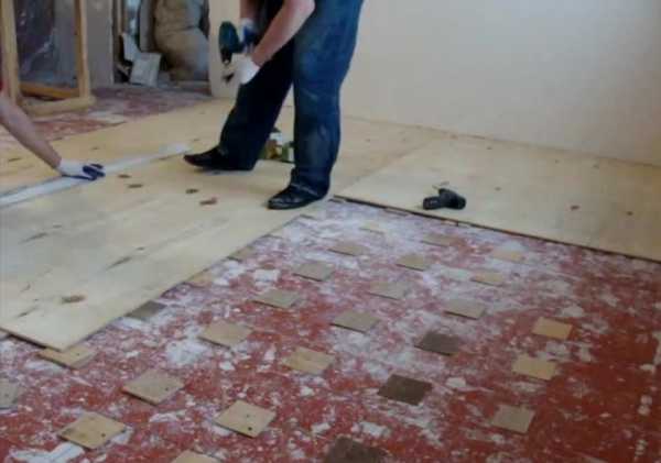 К монтажу фанеры на пол из дерева необходимо подойти со всей серьезностью. Необходимо учитывать, что при выравнивании фанерой большого количества неровностей – толщина фанеры должна быть не менее 1.5 см. Листы фанеры монтируются каждый метр с помощью шурупов. Внимательно смотрите, чтобы при креплении фанеры не возникали люфты.