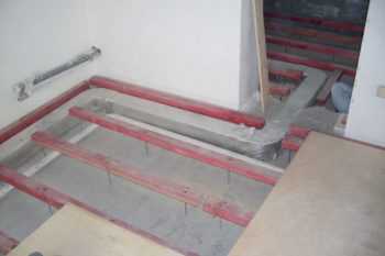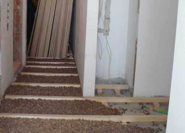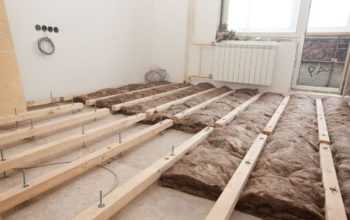 выравнивание пола деревянными лагами и заполнением пространства керамзитомБетонная стяжка