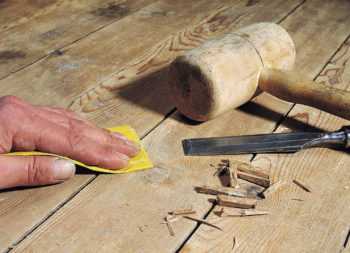 Как сделать шпаклевку из опилок и клея? Первым делом на деревянный пол устанавливаем по уровню маяки (в качестве маяков рекомендуется использовать небольшие деревянные рейки).