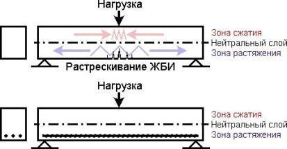 Треснувший снизу защитный слой бетона не всегда означает уменьшение несущей способности плиты перекрытия. В изделии нижняя часть работает на растяжение и эту нагрузку воспринимает рабочая арматура, расположенная как раз в нижней части плиты с защитным слоем бетона (около 3см). Верхняя часть плиты от вертикальной нагрузки сжимается и эту функцию выполняет бетон.