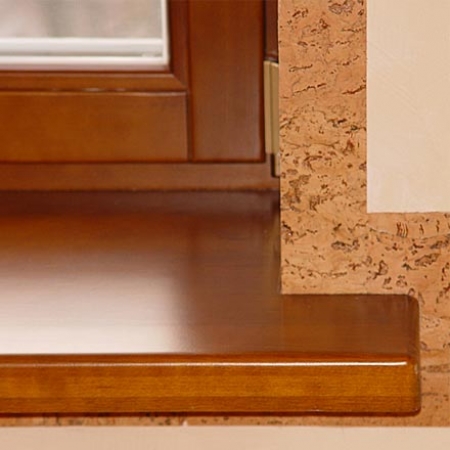 Деревянные изделия. Дерево будет в тренде всегда. Натуральность всегда очаровывает и придает благородство изделию. Этот материал использовался еще нашими дальними предками, но остался актуальным до нашего времени и не теряет своей популярности. Подоконники из дерева будут давать ощущение тепла и уюта в доме, тем более что они обладают красивым естественным рисунком и радующей глаз текстурой. Если вы являетесь ценителем экологически чистых и натуральных материалов, стоит отдать предпочтение именно такому варианту. Благодаря современным технологиям, предварительная обработка сырья способствует тому, что готовые изделия в процессе эксплуатации не будут гнить, деформироваться или ломаться. Но, естественно, за все это нужно платить, и немало. Цена изделий из дерева намного дороже, чем из пластика, поэтому позволить их себе способен не каждый. Если же вы ценитель породы высшего класса, для вас подойдут дорогие подоконники из цельного массива.