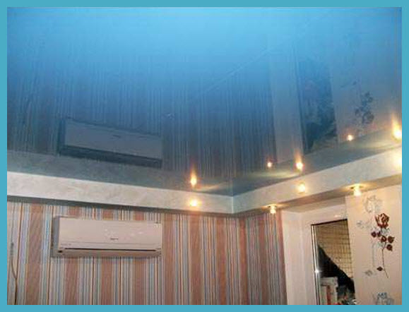 -Это потолок который выполнен в виде натянутой между специальных профилей плёнки — полотна. Такой потолок обладает массой преимуществ по сравнению как с классическими отштукатуренными, так с обычными подвесными и гипсокартонными потолками. Он легко моется, к нему совершенно не прилипает ни какая пыль, так как он не накапливает статическое электричество, которое собственно и притягивает эту пыль к различным поверхностям.